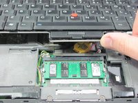 Once the tab is in the unlocked position (far right), pull the battery outwards away from the Thinkpad.