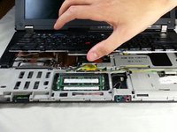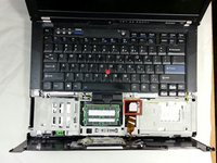 Turn the computer over so the keyboard is facing upwards, and open the Thinkpad.