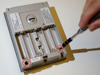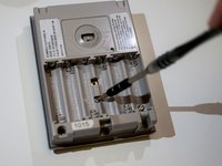 Unscrew the two Phillips head screws in the center of the battery slot.
