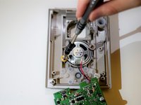 Unscrew the two Phillips head screws that hold the speaker in place.