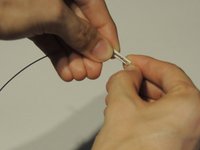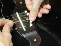With your new string, align the nut end with the groove in the bridge pin so that the nut is at the opposite side of the head of the pin.