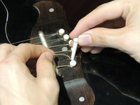 Thread the end of the new string through the hole of the peg, but don't pull it all the way tight, leave the string loose on the neck.