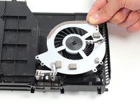 Fans can vary greatly in size and shape, so look for a component with a circular hole that has fan blades inside of it.