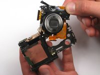 The lens assembly is generally one of the largest components of a camera, and can be identified by a large ring that surrounds the shutter.