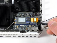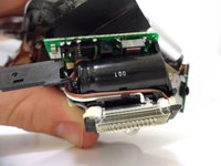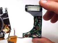 To identify the flash assembly, look for a small board that attaches to the rectangular light on the front of the device.