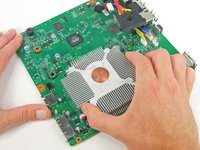 To identify the heatsink, look for metal fins and copper piping that help pull heat away from the CPU.