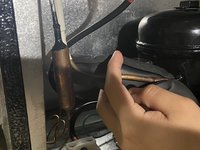 Stick the flathead screwdriver in between the compressor relay and the pot.