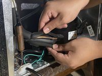Use the flathead screwdriver to push the white cable against the compressor relay to disconnect it.
