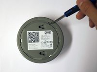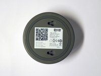 We flip the base and we see a sticker with the Ethernet MAC address and QR code used during the setup.