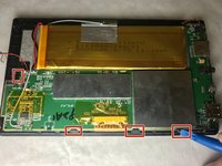 Using the plastic opening tool tool, pry back the 4 four clips to release the motherboard.