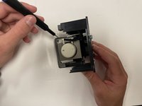 Use a Phillips #00 screwdriver to remove the 5 mm screw from the right side of the lamp housing unit.