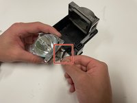 Use a Phillips #1 screwdriver to unscrew the two 9 mm screws on the top of the lamp housing unit.