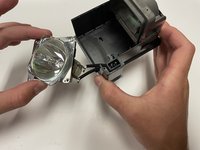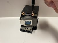 Use a Phillips #1 screwdriver to remove the 1.2 cm Phillips-head screw from each side of the projector.