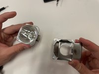 Once the lamp housing is removed flip it over where silver pull tab is face down.