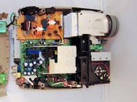 Being careful not to pull the wires inside the projector, gently lift the top panel off the projector.
