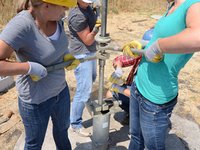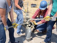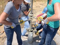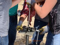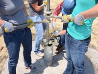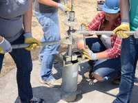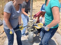 Slowly pull the cylinder off of the pump rod, exposing the traveling valve and foot valve.