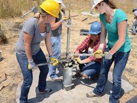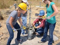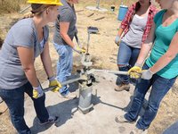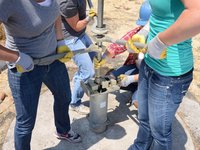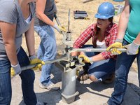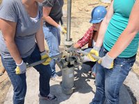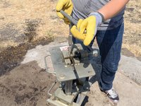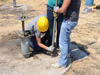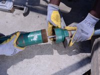 Pull the assembly of riser main pipe and cylinder out of the well and set the assembly on a block of wood to keep the cylinder off the ground.