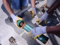 Using two pipe wrenches, unscrew the cylinder from the riser main.
