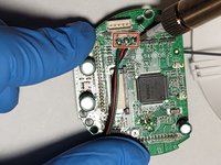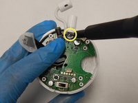 Using the soldering iron and desoldering braid, desolder the antenna from the camera motherboard.