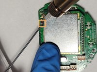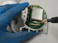 Using a Phillips #000 screwdriver, remove the two 5mm screws holding the camera motherboard in place.