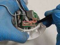Using fine tip tweezers, disconnect the three electrical connectors from the motherboard.