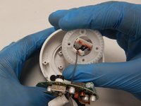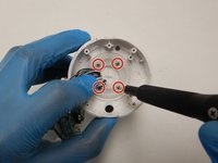 Using a Phillips #00 screwdriver, remove the four 6mm screws in the gear. Take note of the location of the tab on the gear for reassembly.