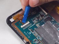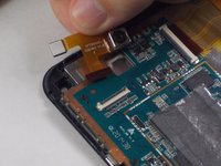 Remove the camera from the device by using your thumb or prying tool to lift the black connector holding in the ribbon cable.