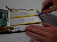 Insert the plastic opening tool along the edge of the battery and gently pry out the battery.