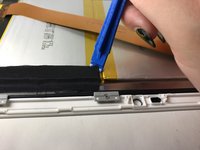Insert the plastic opening tool between the front panel and back case at the upper left hand corner of the tablet.