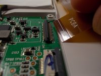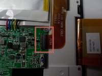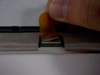 Disconnect the ribbon cable from the screen by lifting up on the connection and pulling out the ribbon cable.