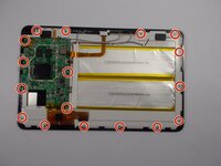 Use a Phillips #0 screwdriver to remove the 17 screws marked in red.