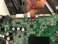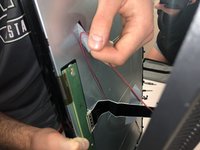 Unplug the red (right speaker) cord from the motherboard.