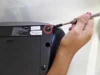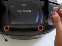 Using a Phillips #0, remove the two 11mm screws attached to the green legs underneath the top panel.