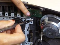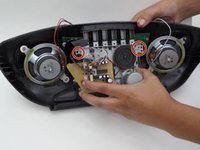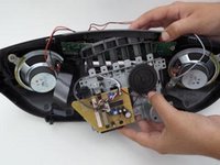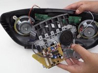 Face the bottom of the opened boombox, and detach the front panel from the back in the following order: