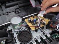 On the back of the unit to the right of the motherboard and between the motor and black circle, there is a rubber band that allows the spinning wheels to spin the knobs. Using tweezers, remove the rubber band and replace it.