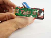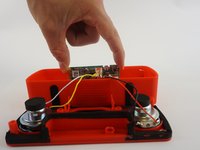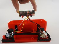 Gently pull apart the speaker to separate the speakers from the battery and motherboard. Then pull out the motherboard with your fingers by grabbing the edges and pulling upwards.