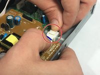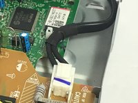 The power cord's white plastic plug is located on the DVD player's mother board.