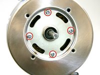 Remove the four 6 mm bolts and small washers that secure the front face of the motor housing with a Phillips #3 screwdriver and remove the washers.