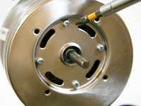 Unscrew the four 8 mm bolts that fasten the back of the fan cage back to the motor housing with a Phillips #3 screwdriver.