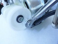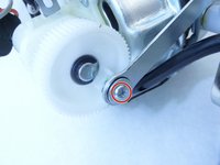 Using a Phillips #3 screwdriver, unscrew the the 16 mm long screw fastening the oscillation arm to the lower oscillation gear screw.