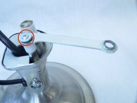 Unscrew the flat 17 mm nut fastened at the bottom of the power knob with a small crescent wrench.