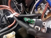 Gently lift the green circuit board out of the socket by pulling on the black and white cables.