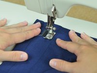 Position your fabric under the presser foot of your sewing machine in the upper right hand corner of the hook-and-loop tape. Drop the presser foot.
