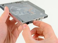 Remove the two black Phillips #0 screws securing the small metal mounting bracket. Transfer this bracket to your new optical drive or hard drive enclosure.