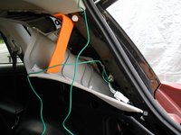 With the JBL speaker on the driver’s side, it made accessing the wiring a bit tougher. (NOTE: The picture that came with the instructions shows the harness being accessed by removing the small vented panels. This is not accurate. The harness is located up higher and behind the rear trim.)