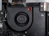 Remove the single T10 Torx screw securing the optical drive fan to the outer case.