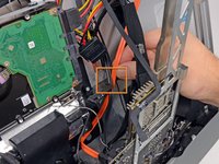 Finish routing the SATA cable though the cutaway in the plastic frame near the optical drive, just below the GPU heat sink.