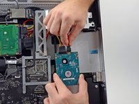 Great guide. I followed it but found after removing the logic board there was no secondary sata port!!! Either way I hooked up the original hard drive to power and temp sensor to stop the fan spin up and used the sata for the SSD so works great. One problem! My sound is now greyed out? Any physical reason for this? When the imac powers on it makes a sound but no sounds in Mac OS. I feel it must be physical not software related.