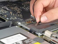Pull the black tab straight up to disconnect the latch on the display data cable ZIF connector.