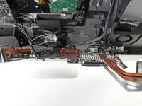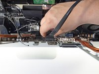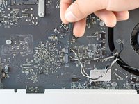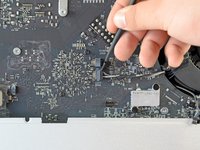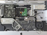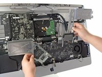 Simultaneously lift and rotate the logic board and heat sink assembly away from the iMac case until you can easily access the back side of the logic board.